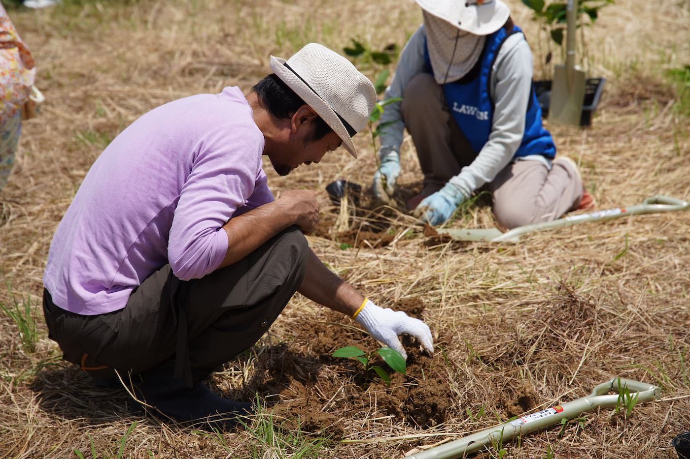 今回の植樹ではローソン緑の募金(コンビニのレジ横にある募金箱に入れていただいた善意)から苗代などのご支援をいただきました。