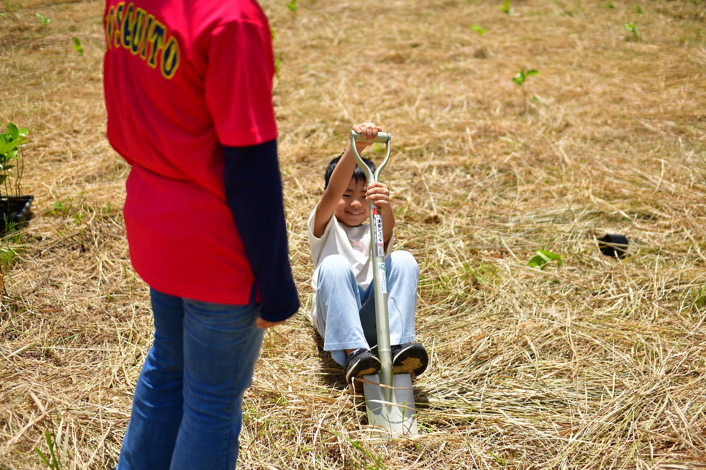 10〜20分おきに休憩をはさみます。その間、子どもたちは虫取りに勤しんだり、突然あらわれたセマルハコガメに夢中になったり。おとなの方は木陰から植えた苗をぼーっと眺めている方も。
